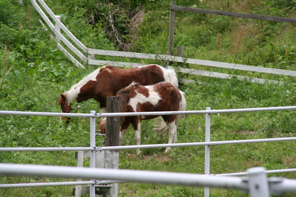 食事も終わり駐車場に戻る途中ロバがいました・・・親子で食事中!!