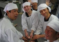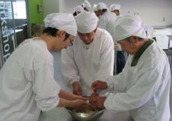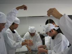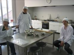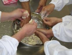 さぁ、時間も押してます(;^_^ 講師さん、遅れてすいません。 皆さん、エプロン・三角巾に・・・変身! 小学校以来でしょうか(爆 ・・・年がばれるかな! チョット、恥ずかしいかもぉぉぉ 2班に分かれて作ります |