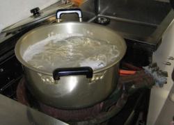 お湯が湧いたら、 ゆでゆで 10分、待つのだ〜 |