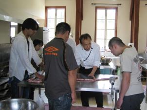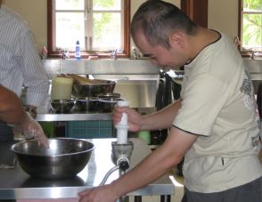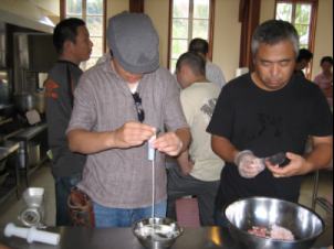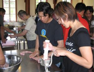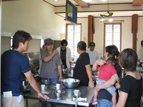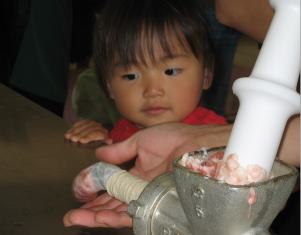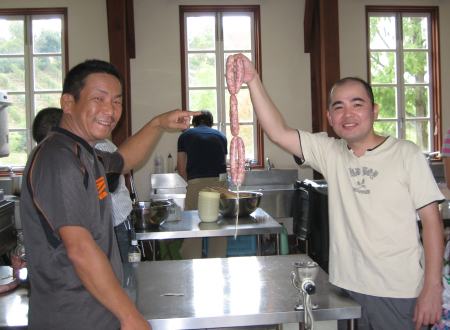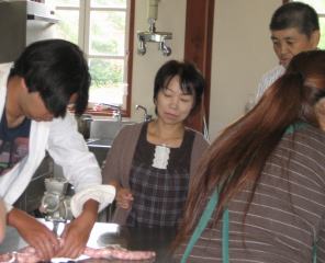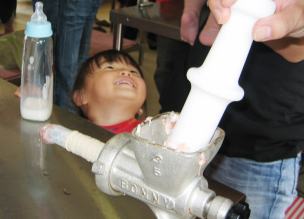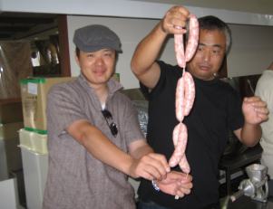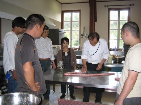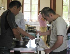 | では、ウインナー作りを体験します ここが体験する場所です |