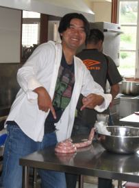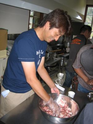 さぁ、最後の肉まで 全部詰め込みますよ〜 |