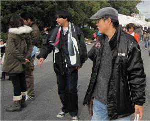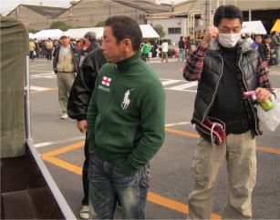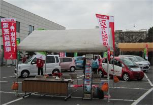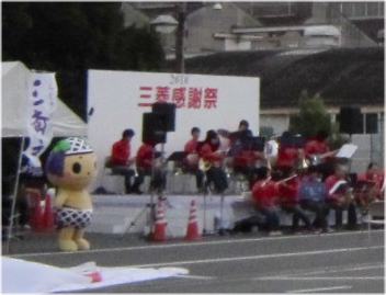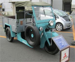 門を入ると、何やら人が大勢、 ステージで催し物 反対は、「アイ」などの三菱車展示 |
