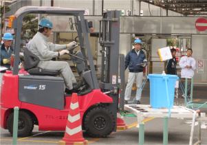 フォークリフトの競技もしてました 水を溢さないように移動してます |