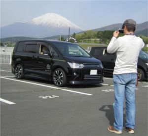 朝、元気よく、お宿を出発 富士の山もきれいに見えてます(^^) |