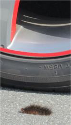 キャ〜(ノ゚ο゚)ノ これは一大事 怪獣がのそのそ、車の方へ |