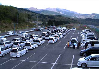 色別に整列し、会場の職員の誘導のもと順番に駐車場から出ていくグランディス隊。