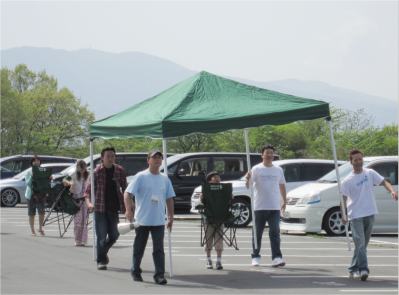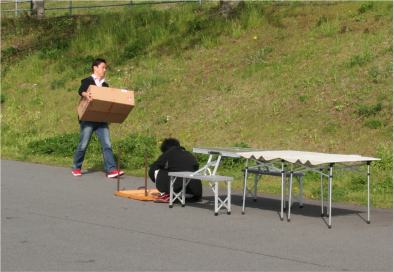 | 今日は暑くなります 後々のイベントに備えて、テント類は 前方へ移動 さぁ、もうひと踏ん張りです(*^.^*) |