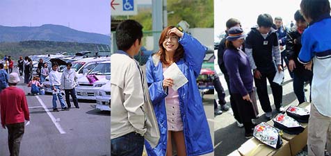 イベントブースでは、各種パーツの格安販売が行われており、中でも菱自用品さんのブース、アウトレットの ユーロテールには注目が集まった。若干のキズがあるだけで、数万する部品が千円均一での販売。じゃんけんでの争奪戦が行われた。