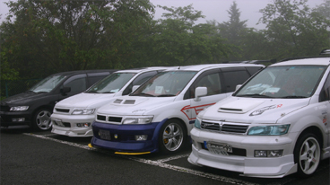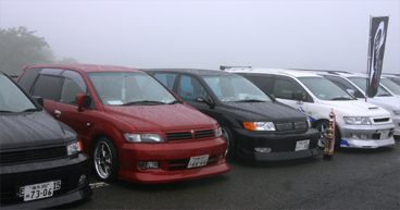 | 3位には一昨年の3位から再び復活の埼玉支部ハリー@相川さん。内装はLV仕様でラグジー系では、右に出るものはいません。トータルバランスに優れた1台です。 4位には、昨年惜しくもベスト10入り出来ず、涙を飲んだ長野支部のシンヤ@田中さん。今年はトレンドのスポコンをうまく取り入れ、バイナルで武装したグランディスは注目の的でした。 |