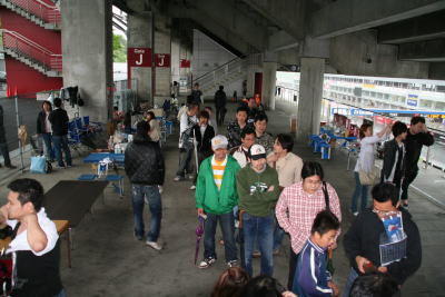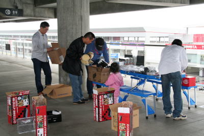 簡単な打ち合わせ後、開門と同時にイベント広場 に直行、GrandioR全国大会会場のセッティングが 始まりました。 |