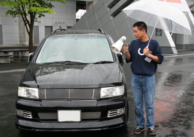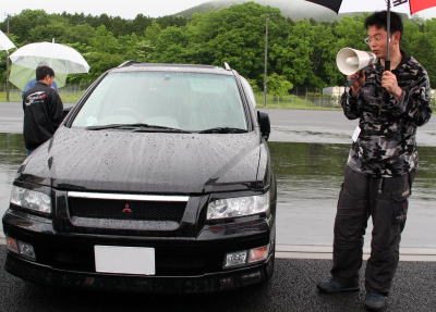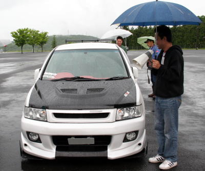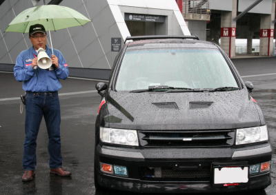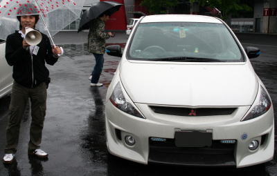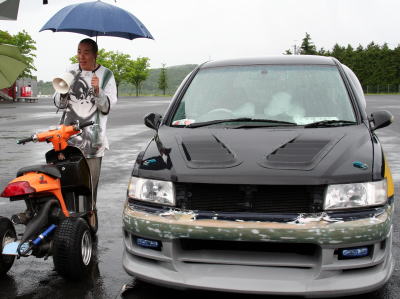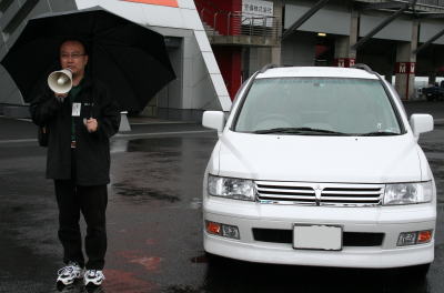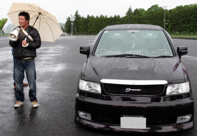 ハンドマイクを用いた自己紹介のトップバッターは ごんたさん、 一昨年のドレコン優勝、King of GrandioR の冠付の愛車です。 |